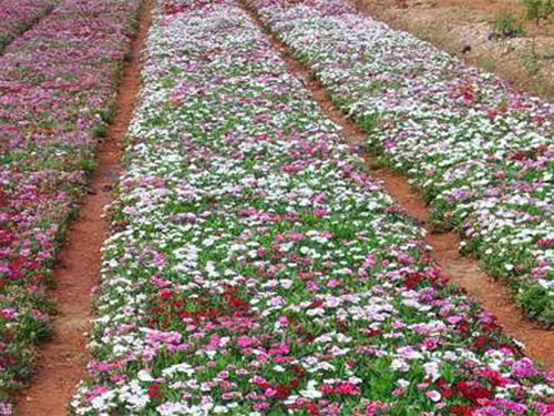 石竹株型低矮,莖稈似竹,葉叢青翠,自然花期5-9月,從暮春季節(jié)可開至仲秋,溫室盆栽可以花開四季?;斏Χ?,單生或成對,也有呈圓錐狀聚傘花序,花徑不大,僅2至3厘米,但花朵繁茂,此起彼伏,觀賞期較長?;ㄉ邪?、粉、紅、粉紅、大紅、紫、淡紫、黃、藍(lán)等,五彩繽紛,變化萬端。園林中可用于花壇、花境、花臺或盆栽,也可用于巖石園和草坪邊緣點(diǎn)綴。大面積成片栽植時(shí)可作景觀地被材料,另外石竹有吸收二氧化硫和氯氣的本領(lǐng),凡有毒氣的地方可以多種。切花觀賞亦佳。